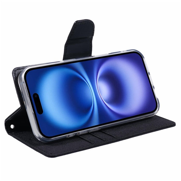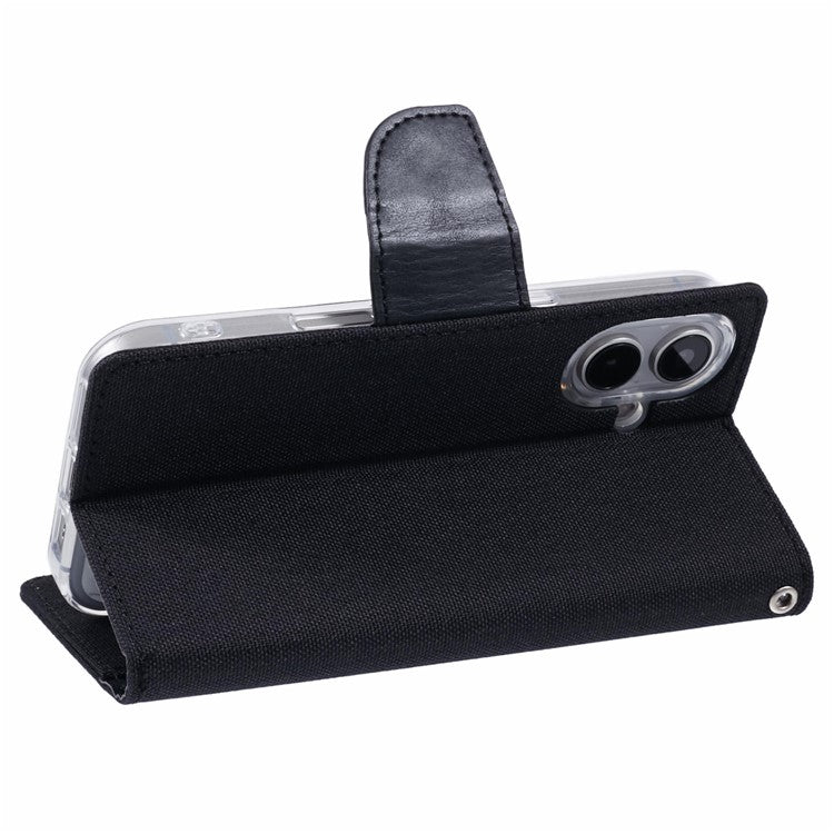 MERCURY GOOSPERY For iPhone 16 Plus Case Canvas Texture Leather Wallet Phone Cover - Black