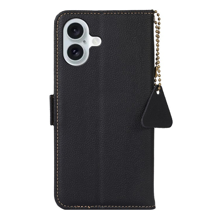 TJ For iPhone 16 Case RFID Blocking Genuine Cow Leather Phone Cover with Wallet Stand - Black