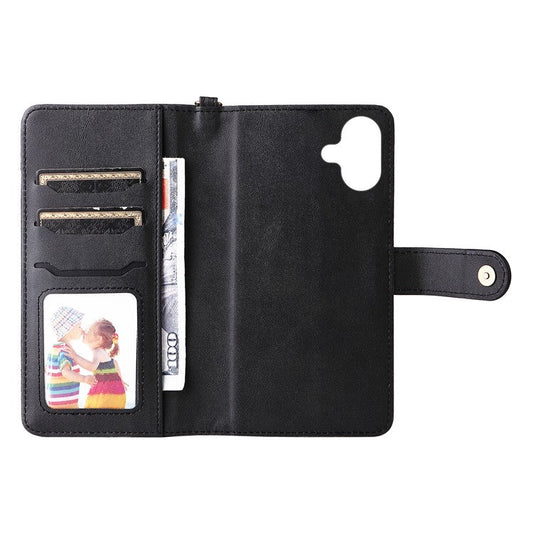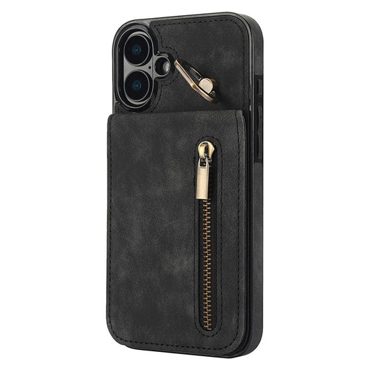 For iPhone 16 Plus Case RFID Blocking Ring Kickstand Retro Leather+TPU Anti-Fall Phone Cover - Black