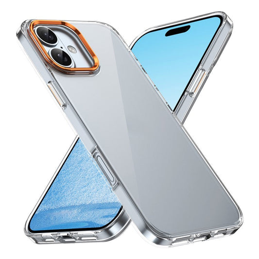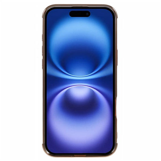 For iPhone 16 Plus Case Compatible with MagSafe Metal Lens Frame Y Pattern PC+PU Phone Cover - Brown