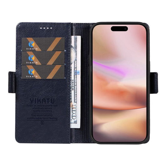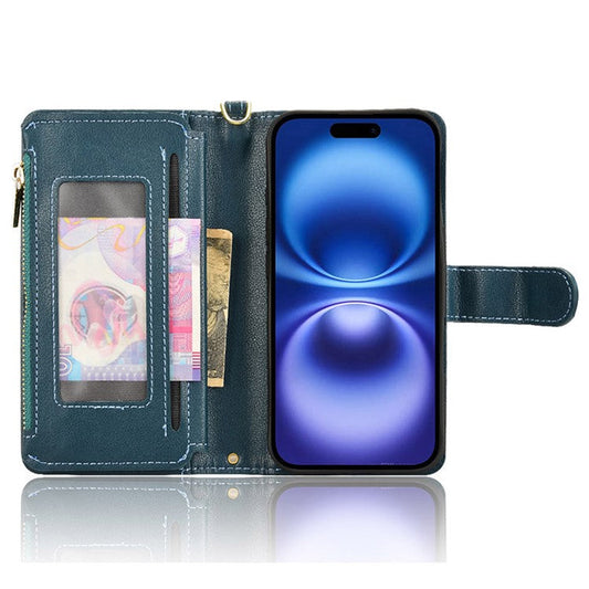 Y3 For iPhone 16 Plus Case Card Holder Kickstand Leather+TPU Phone Cover with Zipper Pocket - Purple