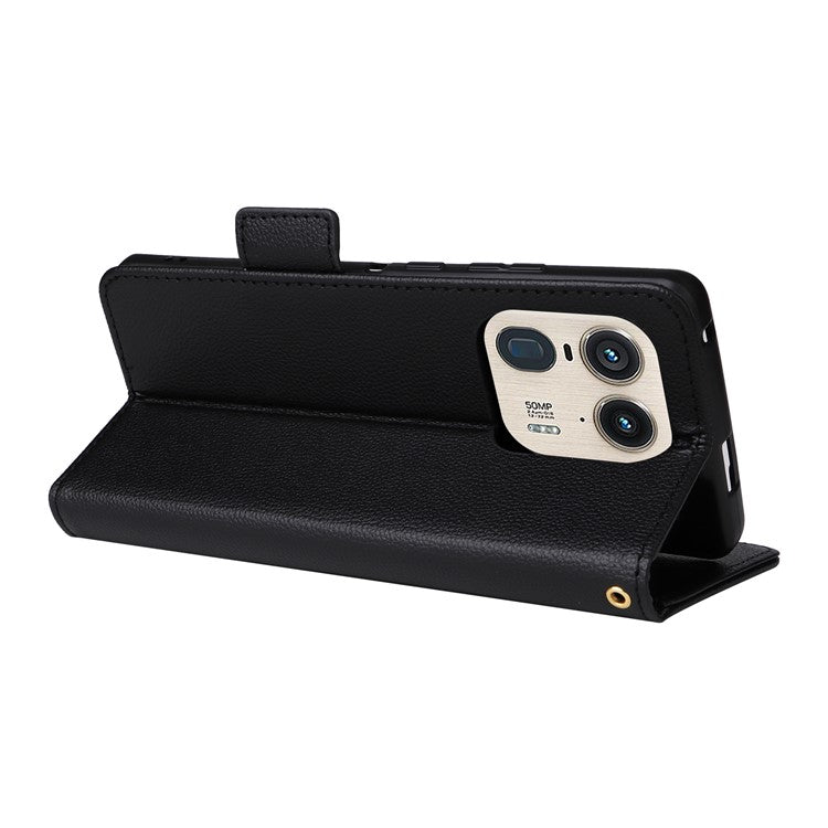 For Motorola Edge 50 Ultra 5G / Moto X50 Ultra 5G Case Wallet Stand Litchi Texture Leather Flip Phone Cover - Black