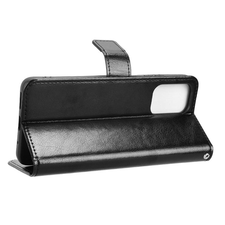 For Motorola Moto G05 4G / E15 4G Case Crazy Horse Texture PU Leather Phone Wallet Cover - Black