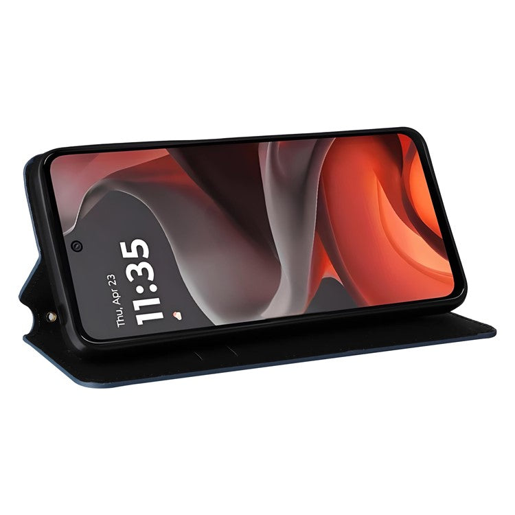 For Motorola Moto G15 Power 4G / G15 4G Wallet Case Rhombus Imprinted Leather Phone Cover - Blue
