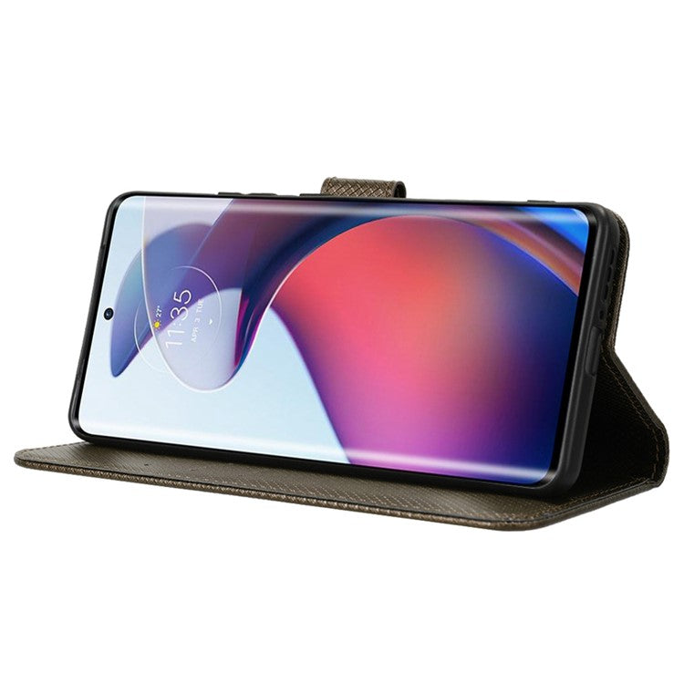 For Motorola Moto S30 Pro 5G / Edge 30 Fusion 5G Diamond Texture Phone Wallet Shockproof Shell PU Leather Stand Case with Wrist Strap - Brown