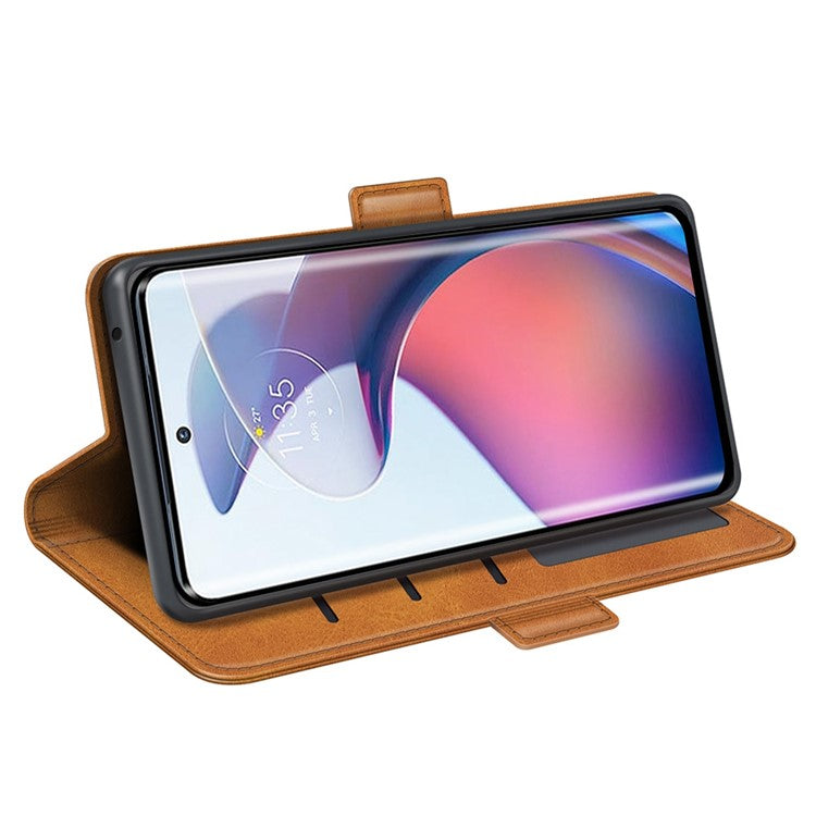 For Motorola Moto S30 Pro 5G / Edge 30 Fusion 5G Full Protection Phone Case Textured PU Leather Dual Magnetic Clasp Folio Flip Stand Wallet Cover - Yellow