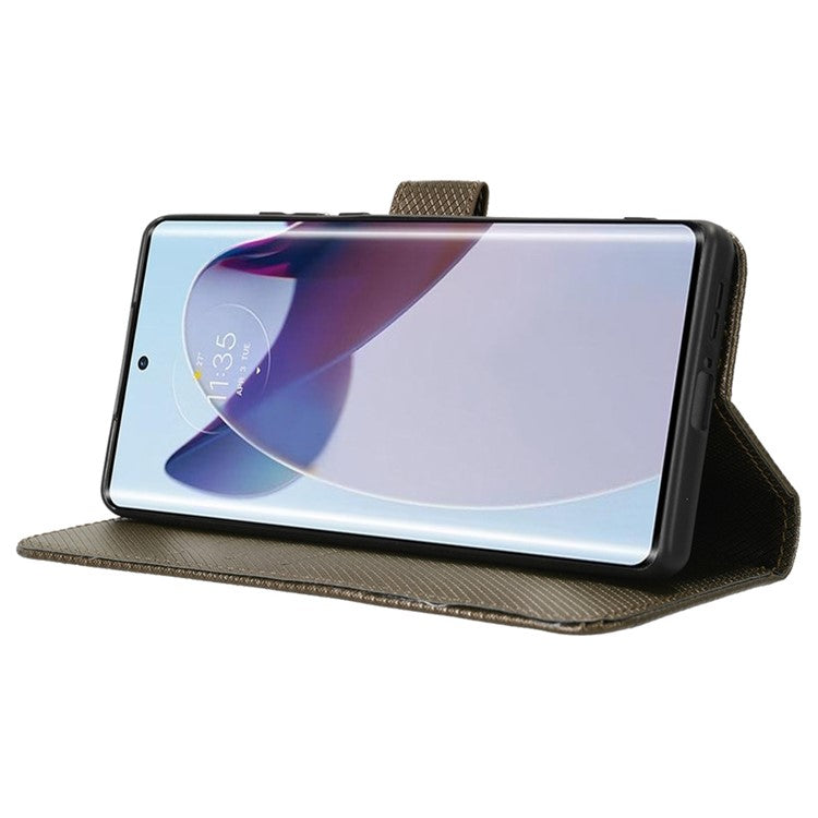 For Motorola Moto X30 Pro 5G / Edge 30 Ultra 5G PU Leather Stand Case Diamond Texture Phone Wallet Cover - Brown