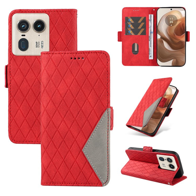 For Motorola Moto X50 Ultra 5G / Edge 50 Ultra 5G Wallet Stand Case Leather Phone Cover Rhombus Imprint - Red