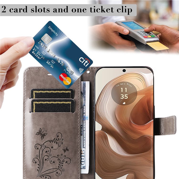 KT Imprinting Flower Series-2 For Motorola Moto X50 Ultra 5G / Edge 50 Ultra 5G Case PU Leather Butterfly Imprint Phone Cover - Grey