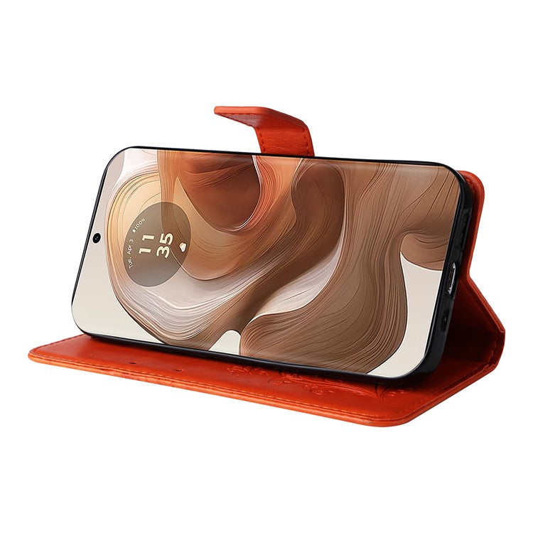 KT Imprinting Flower Series-2 For Motorola Moto X50 Ultra 5G / Edge 50 Ultra 5G Case PU Leather Butterfly Imprint Phone Cover - Orange