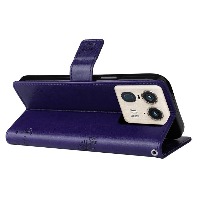 KT Imprinting Flower Series-3 For Motorola Moto X50 Ultra 5G / Edge 50 Ultra 5G Case Imprinted Wallet Leather Phone Cover - Purple