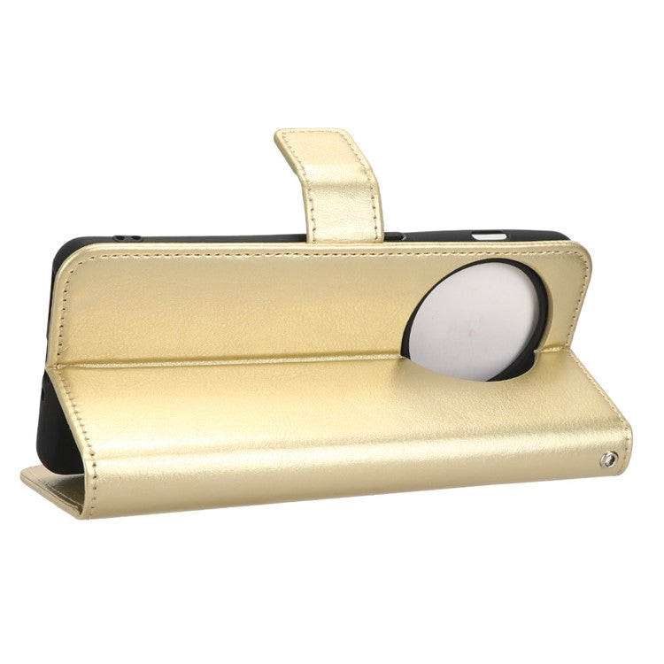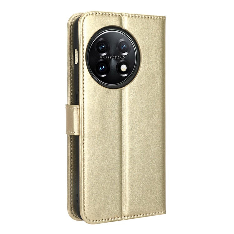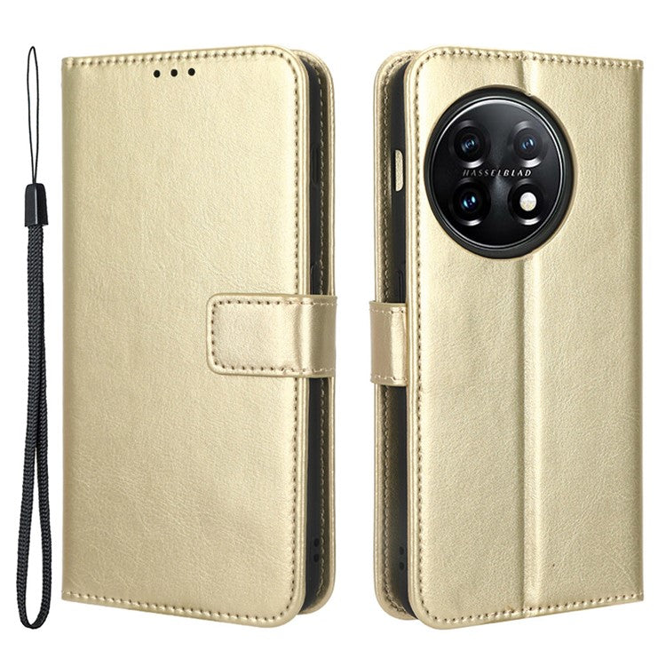 Anti-fall Leather Phone Cover for OnePlus 11 5G, Crazy Horse Texture Protective Phone Case Stand Wallet with Strap - Gold