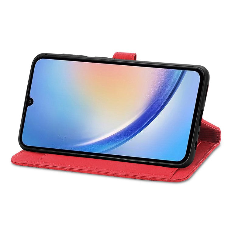 For OnePlus 12 5G Case Leather Card Slots Flower Phone Cover with Wrist Strap - Red