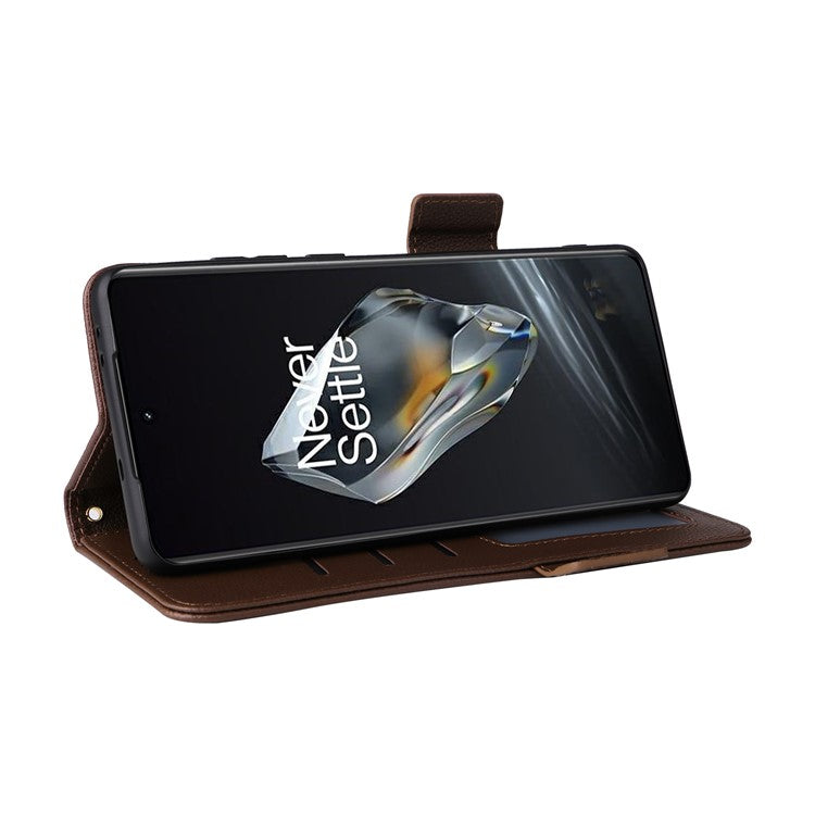 For OnePlus 12 5G Case PU Leather Litchi Texture Card Slots Phone Protector with Strap - Brown