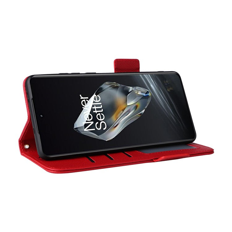 For OnePlus 12 5G Case PU Leather Litchi Texture Card Slots Phone Protector with Strap - Red