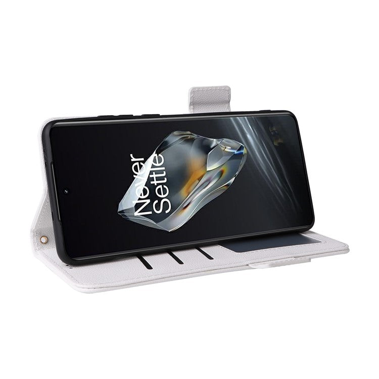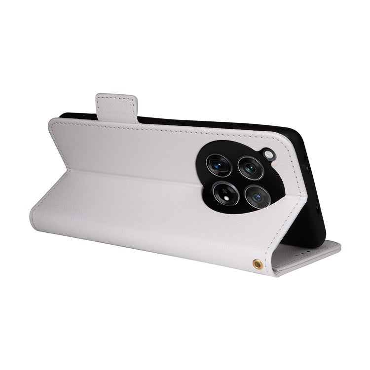 For OnePlus 12 5G Case PU Leather Litchi Texture Card Slots Phone Protector with Strap - White