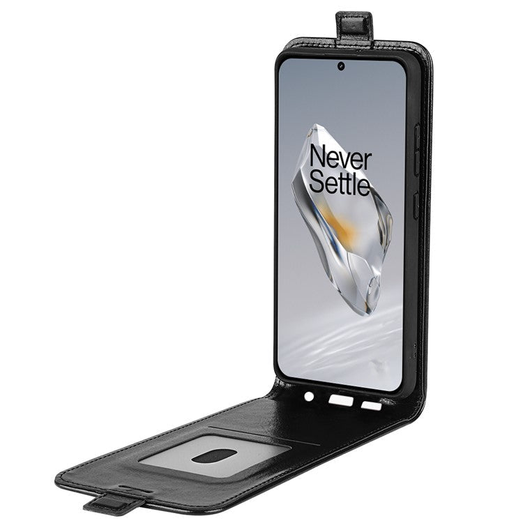 For OnePlus 12 5G Case with Card Holder Vertical Flip Crazy Horse Texture Phone Cover - Black