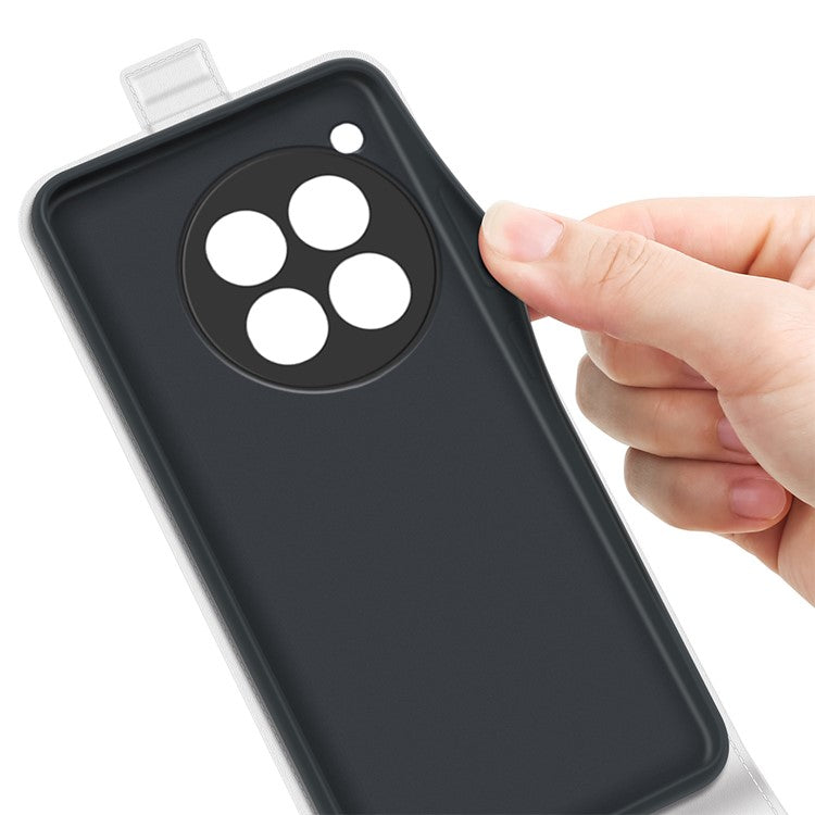 For OnePlus 12 5G Case with Card Holder Vertical Flip Crazy Horse Texture Phone Cover - White