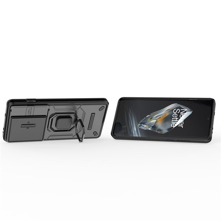 For OnePlus 12 5G Cell Phone Case Anti-drop Kickstand Back Cover with Slide Camera Lid - Black