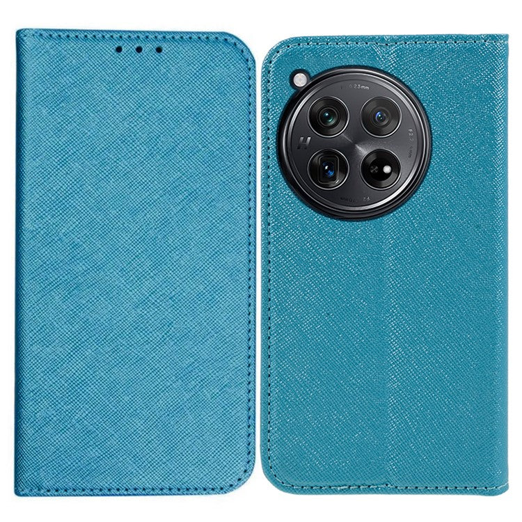 For OnePlus 12 5G Cell Phone Case Cross Texture Anti-Scratch Wallet Stand Cover PU Leather Shell - Sky Blue