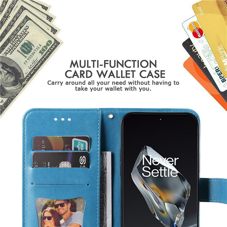 For OnePlus 12 5G Cell Phone Case Imprinted Flower PU Leather Phone Stand Cover - Blue