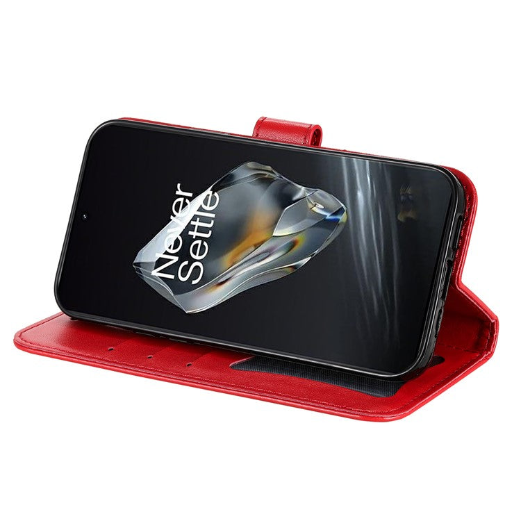 For OnePlus 12 5G Cell Phone Case Imprinted Flower PU Leather Phone Stand Cover - Red