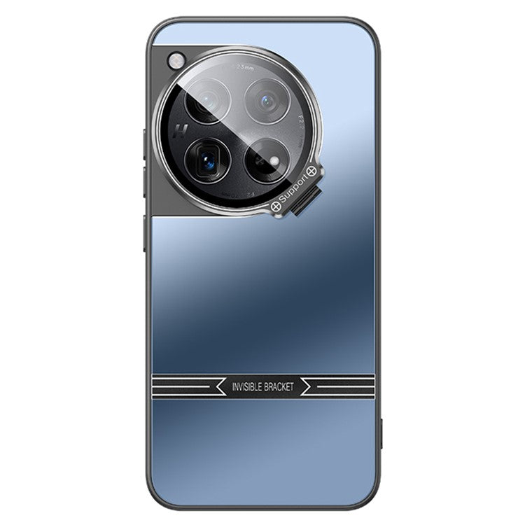 For OnePlus 12 5G Cell Phone Cases Matte PC+TPU Cover with Lens Frame Kickstand - Navy Blue