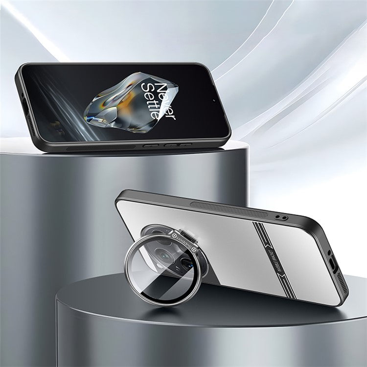 For OnePlus 12 5G Cell Phone Cases Matte PC+TPU Cover with Lens Frame Kickstand - Silver