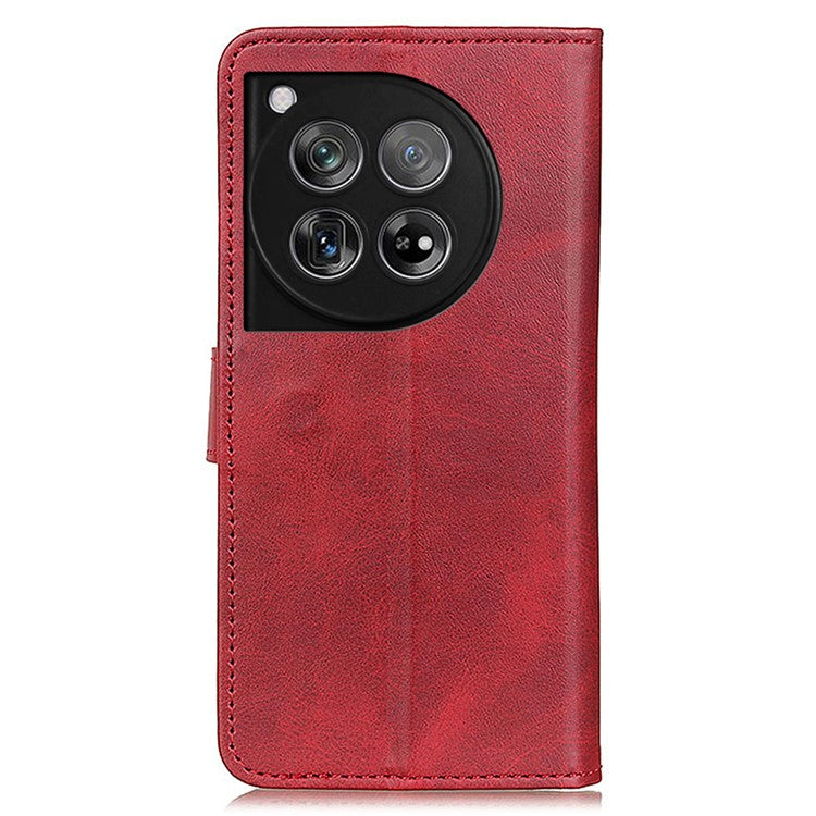 For OnePlus 12 5G Chic Leather Case Cowhide Texture Wallet Stand Cover - Red