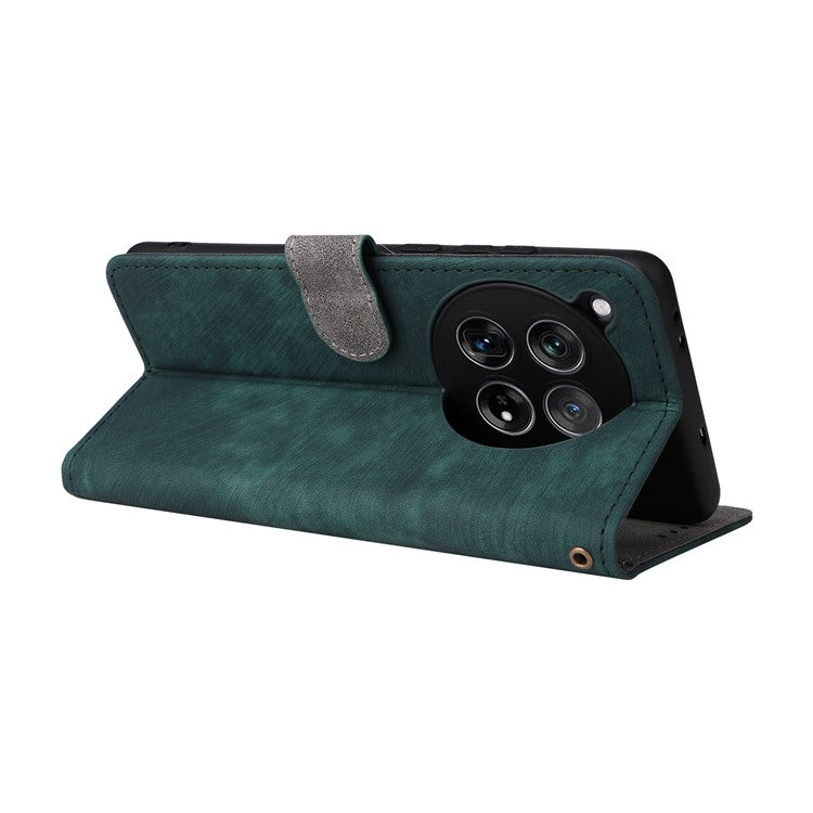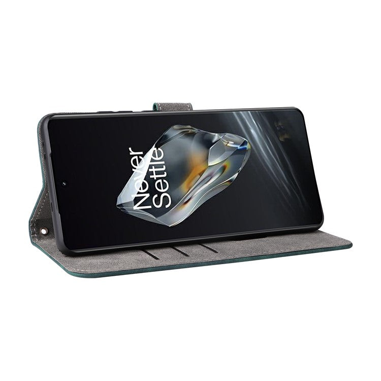 For OnePlus 12 5G Leather Phone Case with Strap RFID Blocking Card Slots - Green