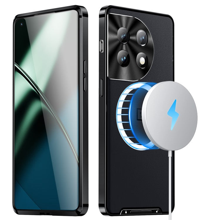 For OnePlus 12 5G Matte Case Compatible with MagSafe Metal Frame Protective Phone Cover - Black