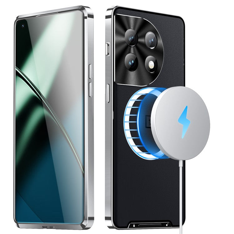 For OnePlus 12 5G Matte Case Compatible with MagSafe Metal Frame Protective Phone Cover - Silver