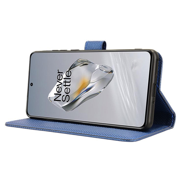 For OnePlus 12 5G Shockproof Mobile Phone Case PU Leather Stand Cover - Blue