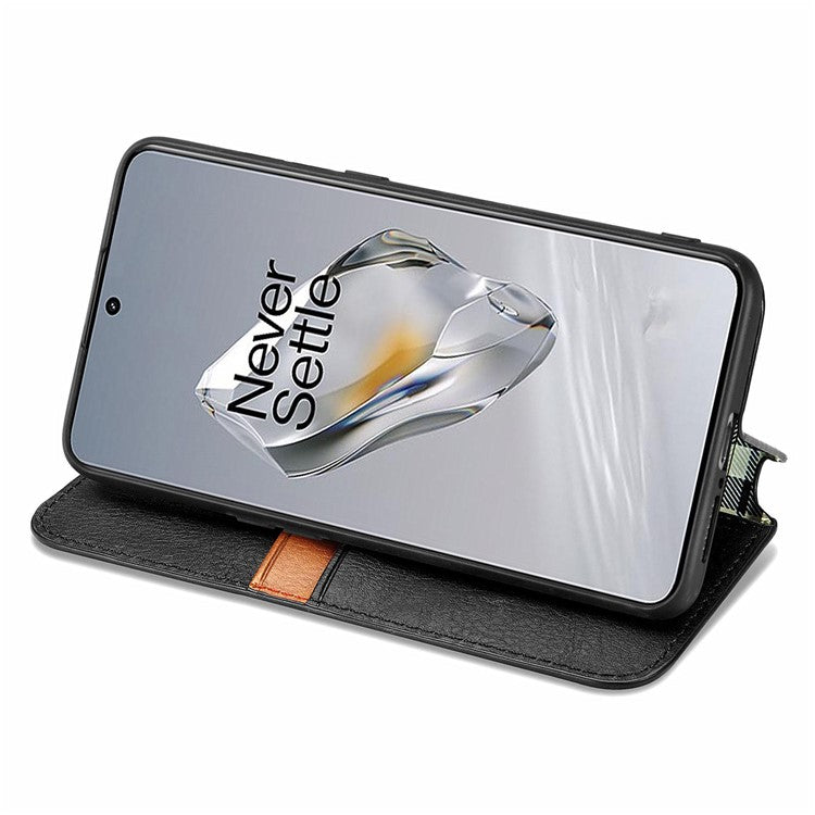 For OnePlus 12 5G Wallet Phone Cover Imprinted Rhombus Leather Flip Case - Black