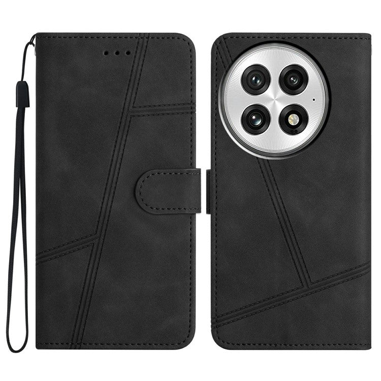 For OnePlus 13 Case Flip Leather Retro Phone Cover Lines Imprinted - Black