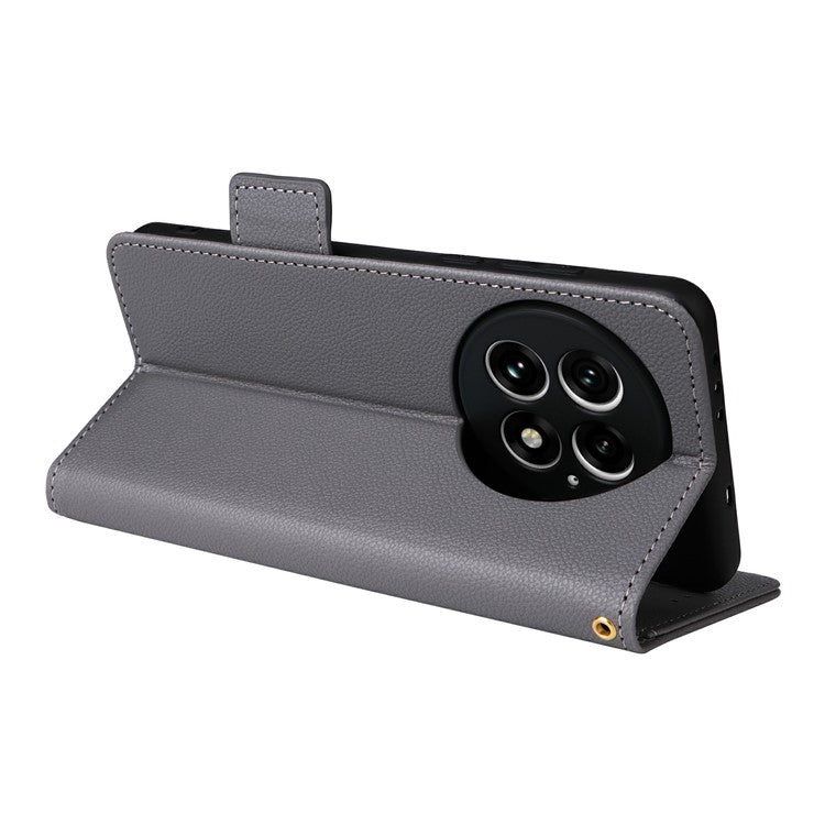 For OnePlus 13 Case Litchi Texture PU Leather Wallet Flip Phone Cover - Grey