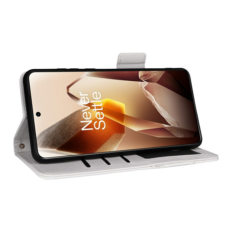 For OnePlus 13 Case Litchi Texture PU Leather Wallet Flip Phone Cover - White