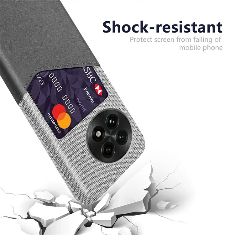 For OnePlus 13 Case PU Leather Card Slot Cloth Texture Hard PC Phone Cover - Grey
