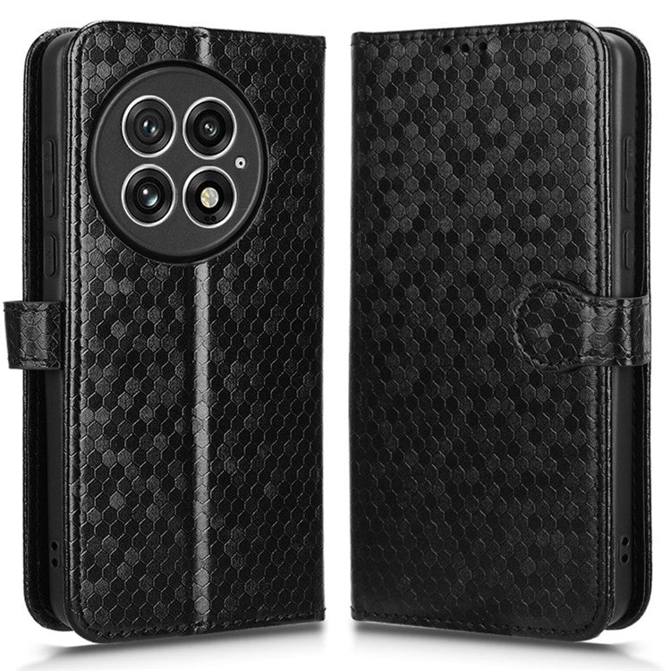 For OnePlus 13 Wallet Case Dot Pattern Imprint PU Leather Phone Cover - Black
