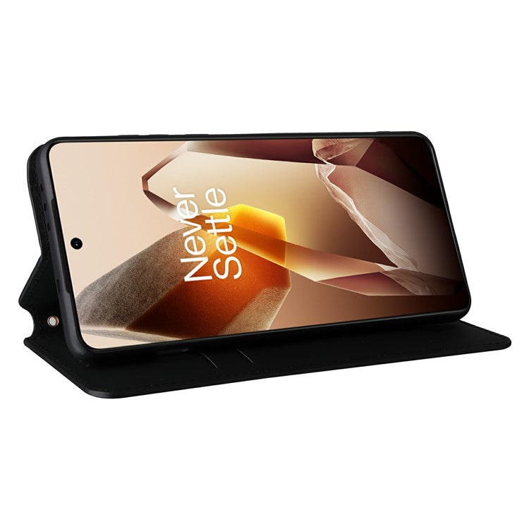 For OnePlus 13 Wallet Case Rhombus Imprinted Leather Phone Cover - Black