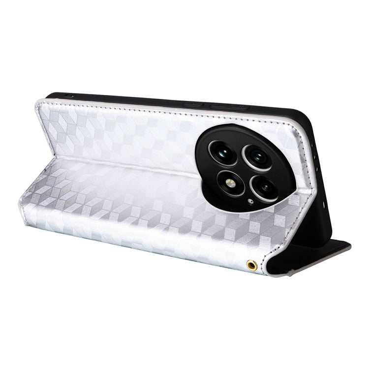 For OnePlus 13 Wallet Case Rhombus Imprinted Leather Phone Cover - Silver