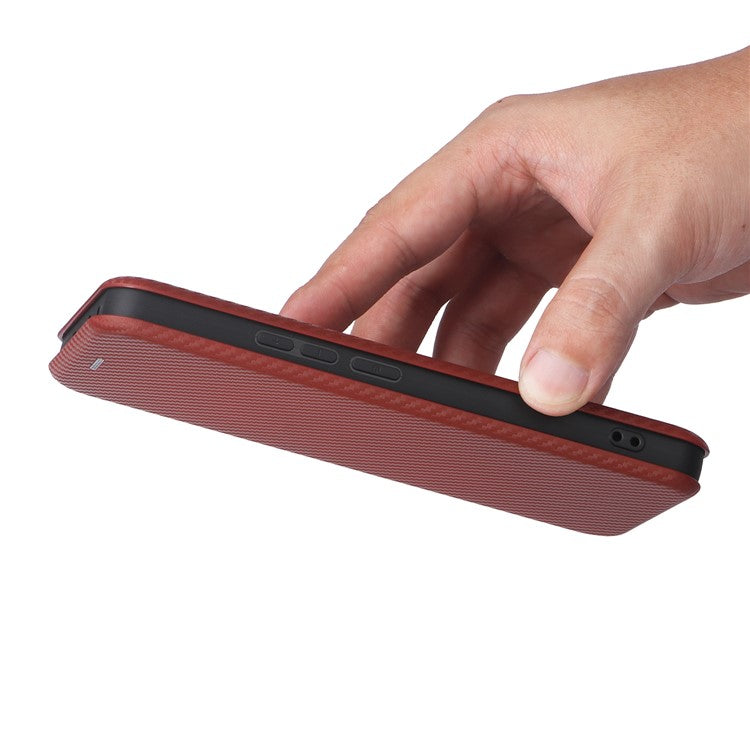For OnePlus Nord 4 Case Carbon Fiber Texture Drop-Proof PU Leather Phone Cover - Brown