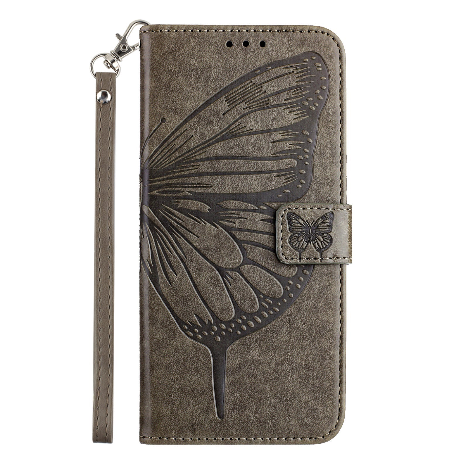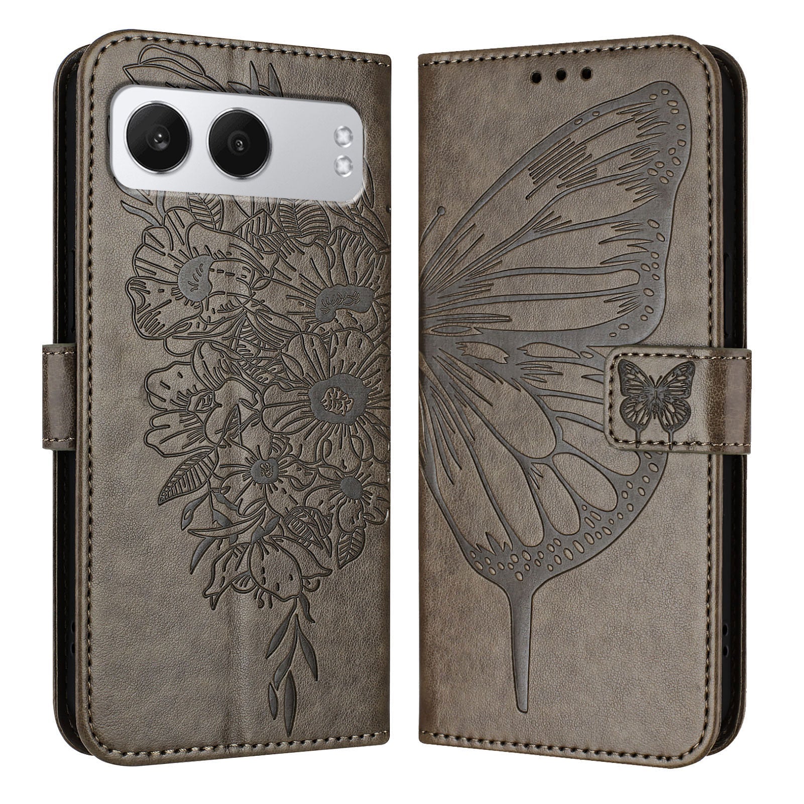For OnePlus Nord 4 Case YB Imprinting Series-4 Butterfly Flower Flip Wallet Leather Phone Cover - Grey