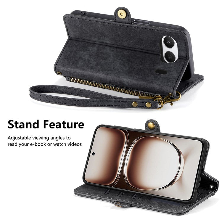 For OnePlus Nord 4 Case Zipper Wallet Geometry Lines Leather Phone Cover - Black