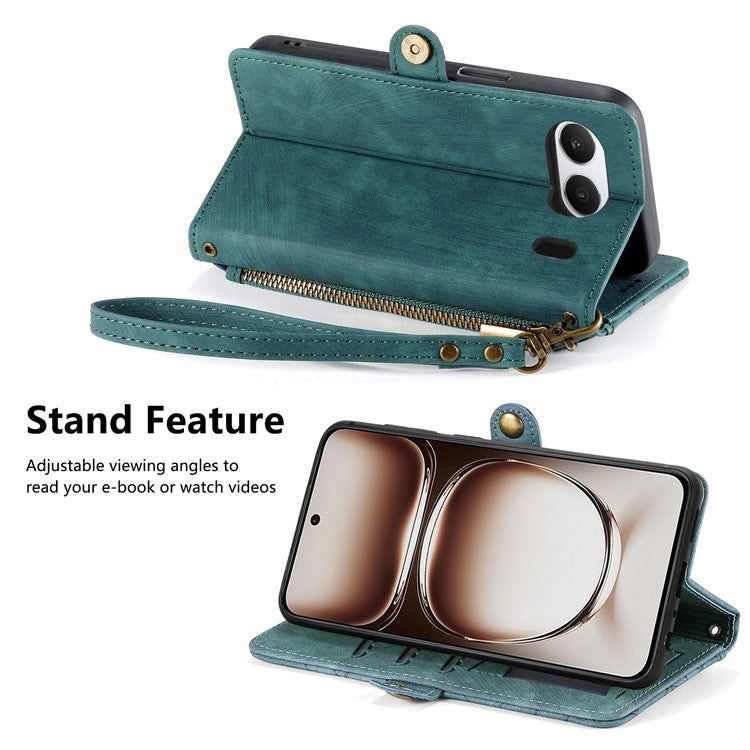 For OnePlus Nord 4 Case Zipper Wallet Geometry Lines Leather Phone Cover - Green