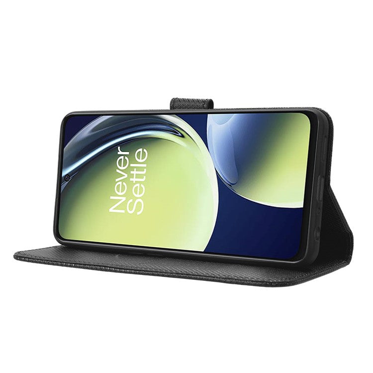 For OnePlus Nord CE 3 Lite 5G / Nord N30 5G Phone Case Wallet Stand Diamond Texture Phone Leather Cover - Black