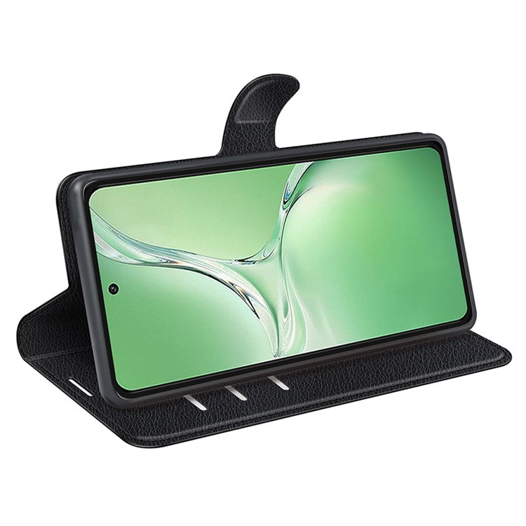 For OnePlus Nord CE4 5G / Oppo K12 Case Litchi Grain Leather Folio Flip Phone Cover - Black