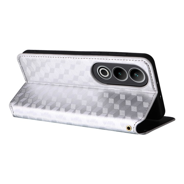 For OnePlus Nord CE4 5G / Oppo K12 Wallet Case Rhombus Imprinted PU Leather Phone Cover - Silver