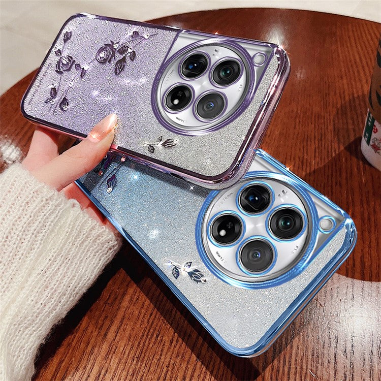 KADEM Phone Case for OnePlus 12 5G Flower Decor Gradient TPU Mobile Cover - Blue