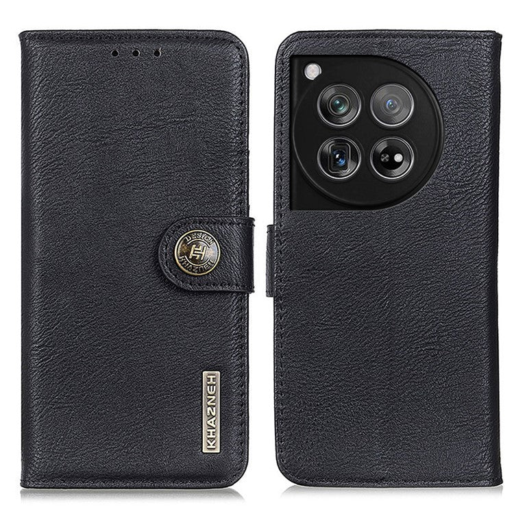 KHAZNEH For OnePlus 12 5G Case Cowhide Texture Stand Wallet Anti-drop Phone Cover - Black